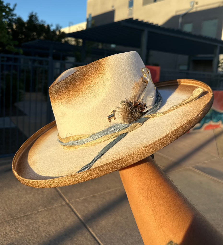 Classically clean wide brim pork pie. 100% Australian wool with a grosgrain band and trim with a satin lining. An adjustable cotton sweatband ensures a perfect fit at all times. Brim approximately 3 1/2 in