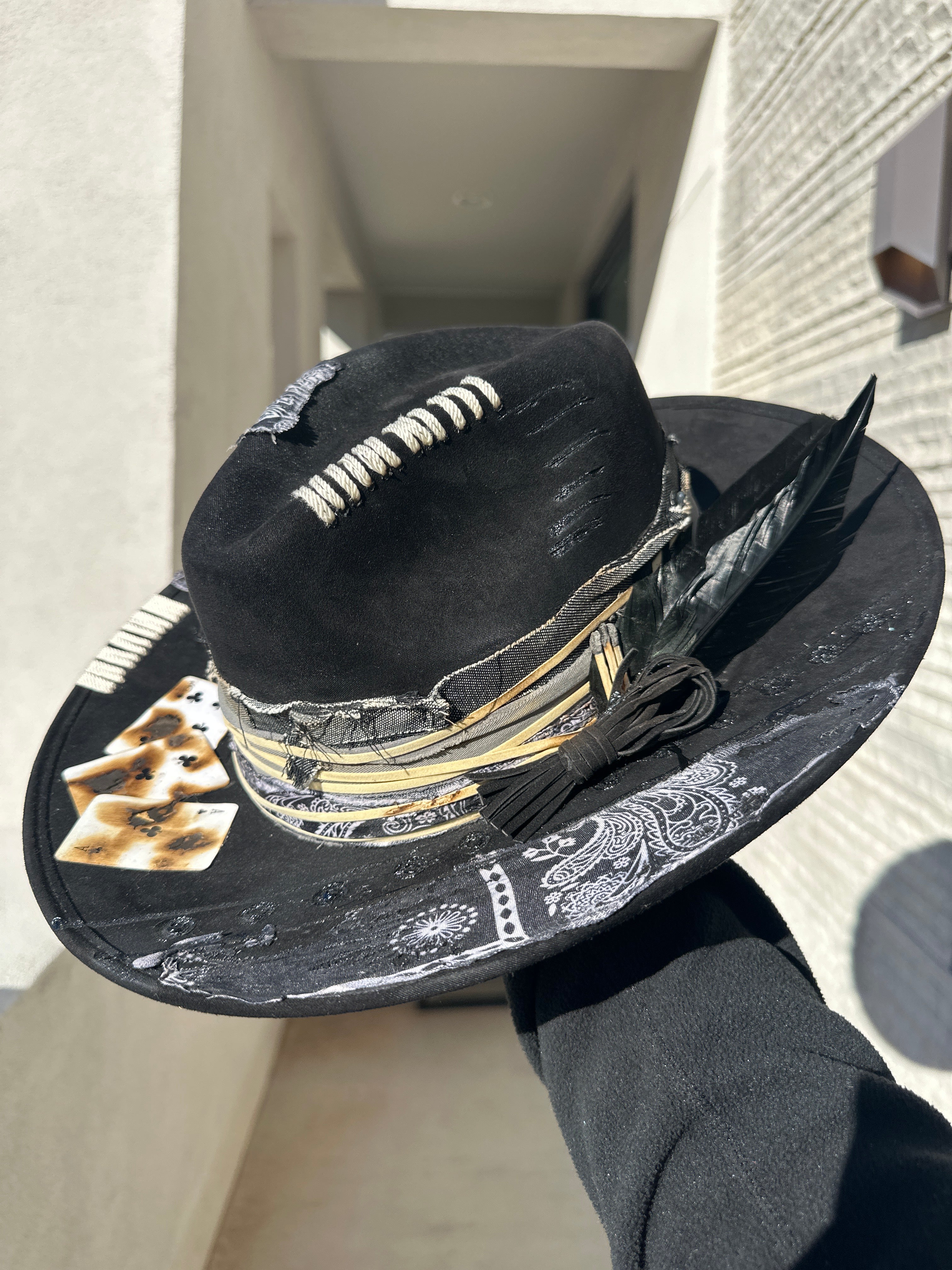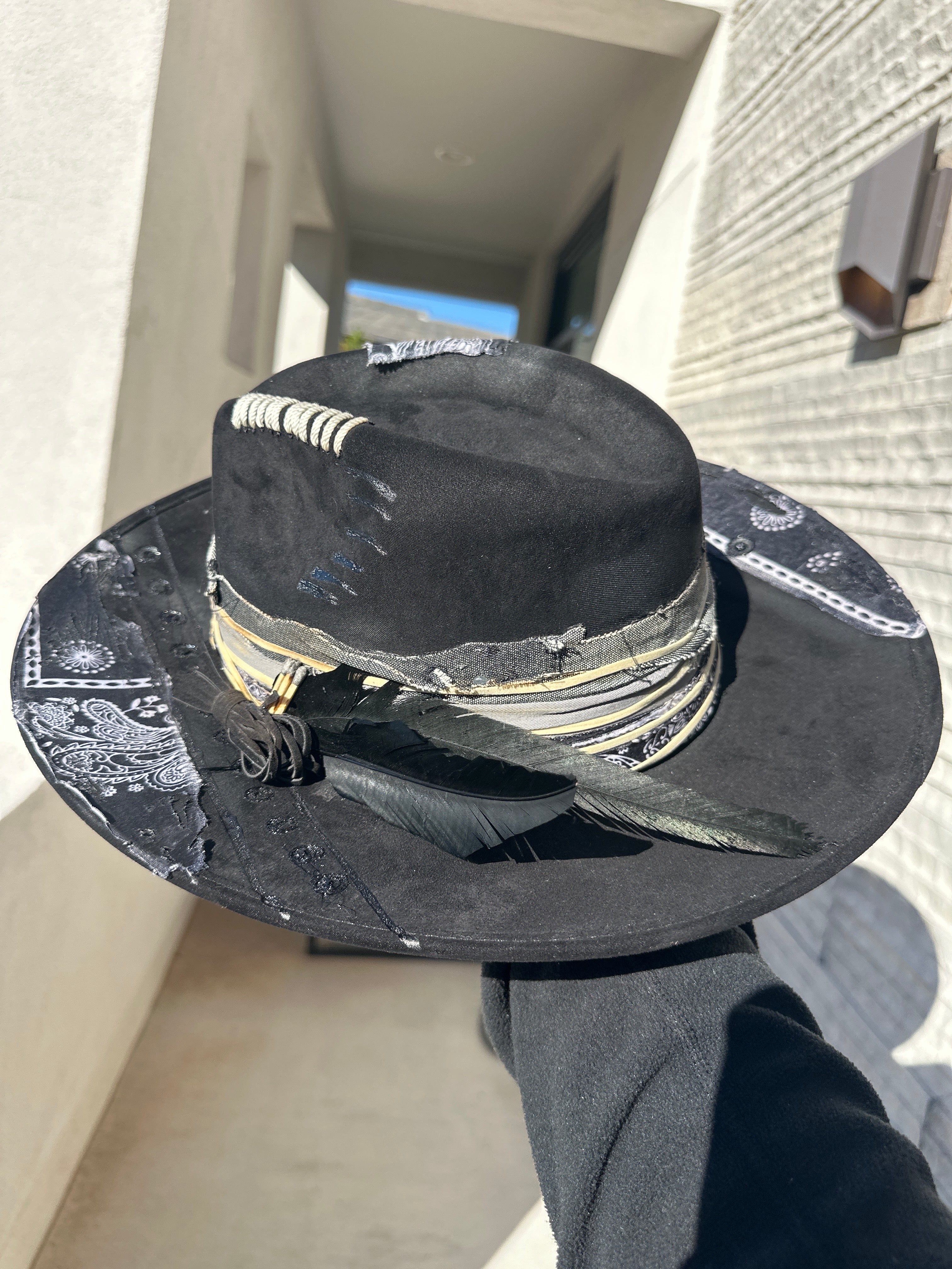 Custom one of a kind fedora. Vegan Suede finish.