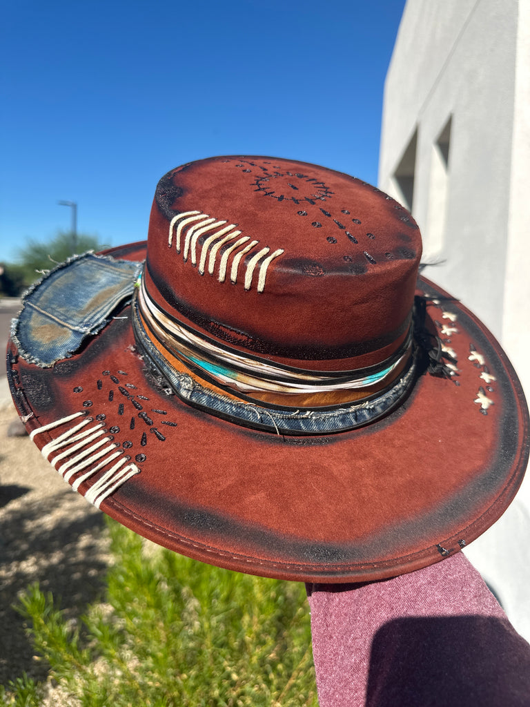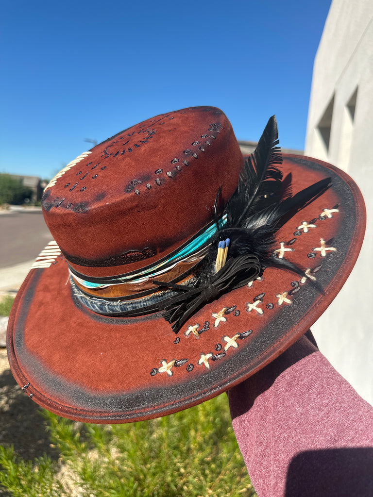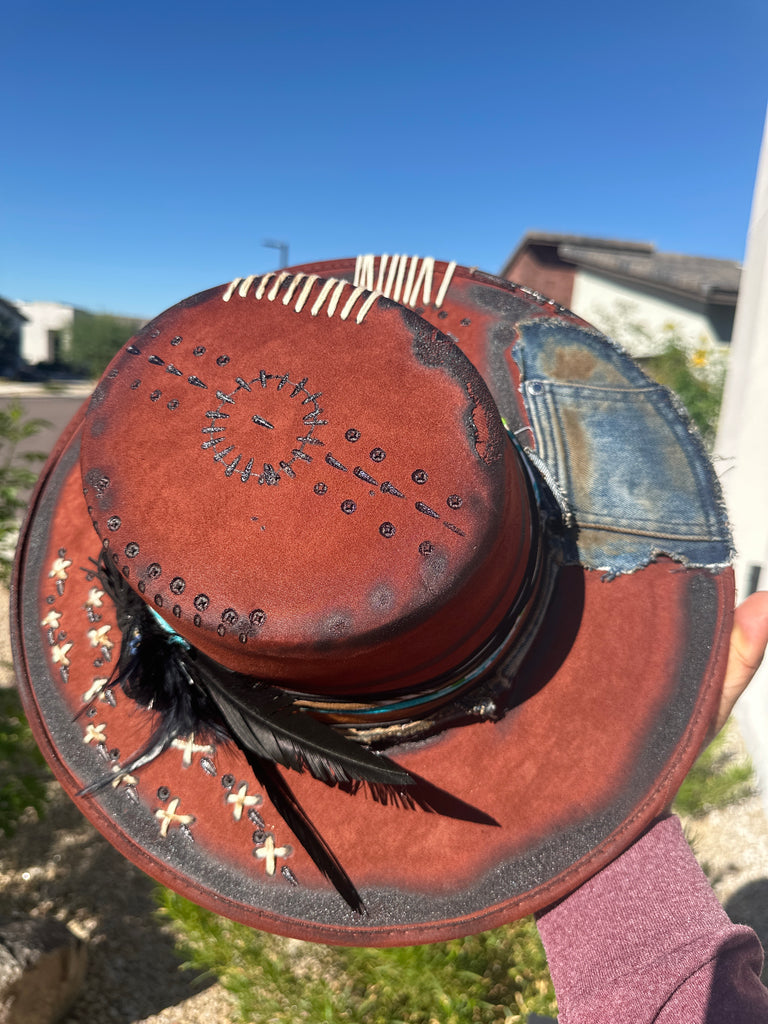Custom one of a kind fedora. Vegan Suede finish.