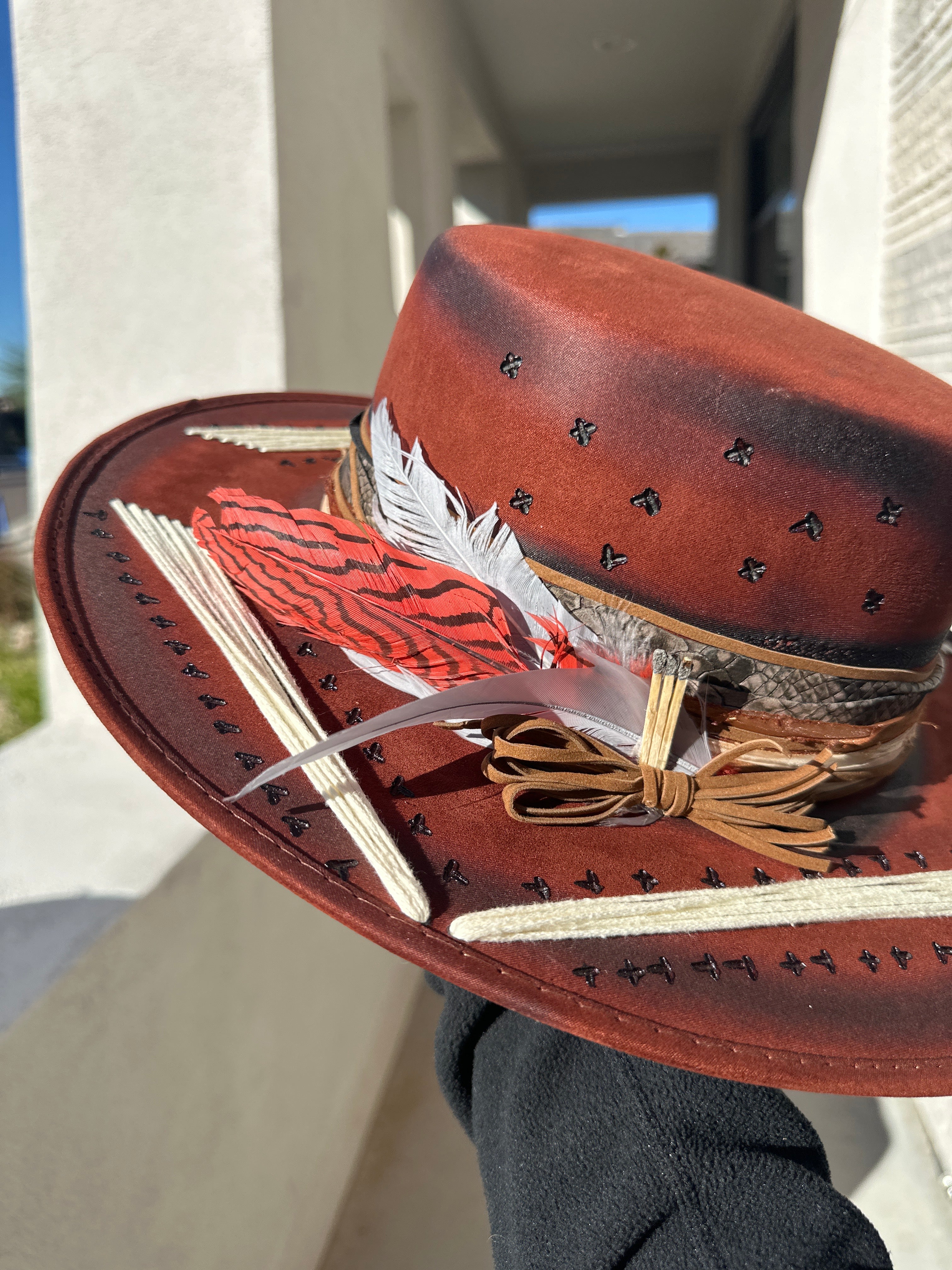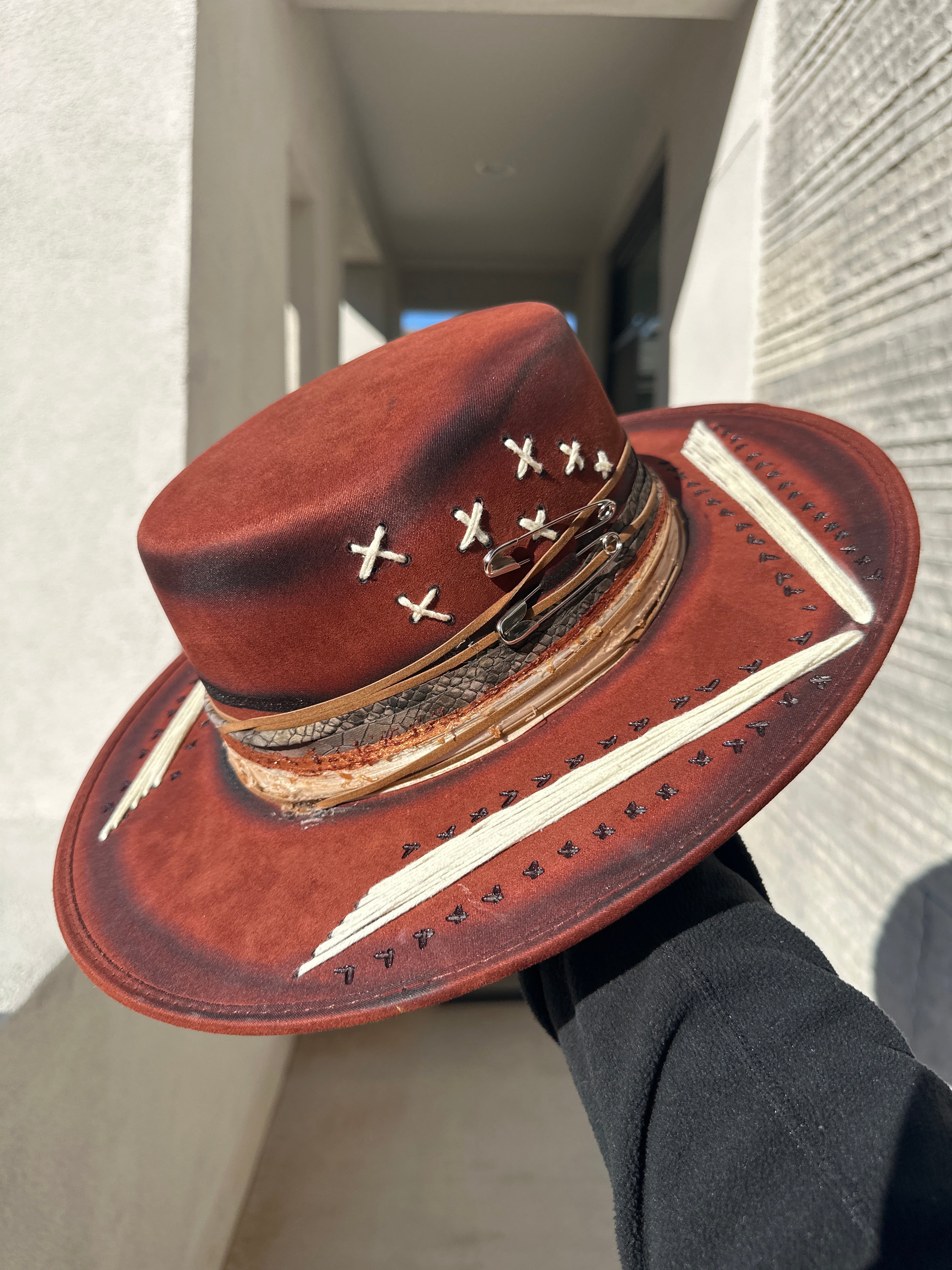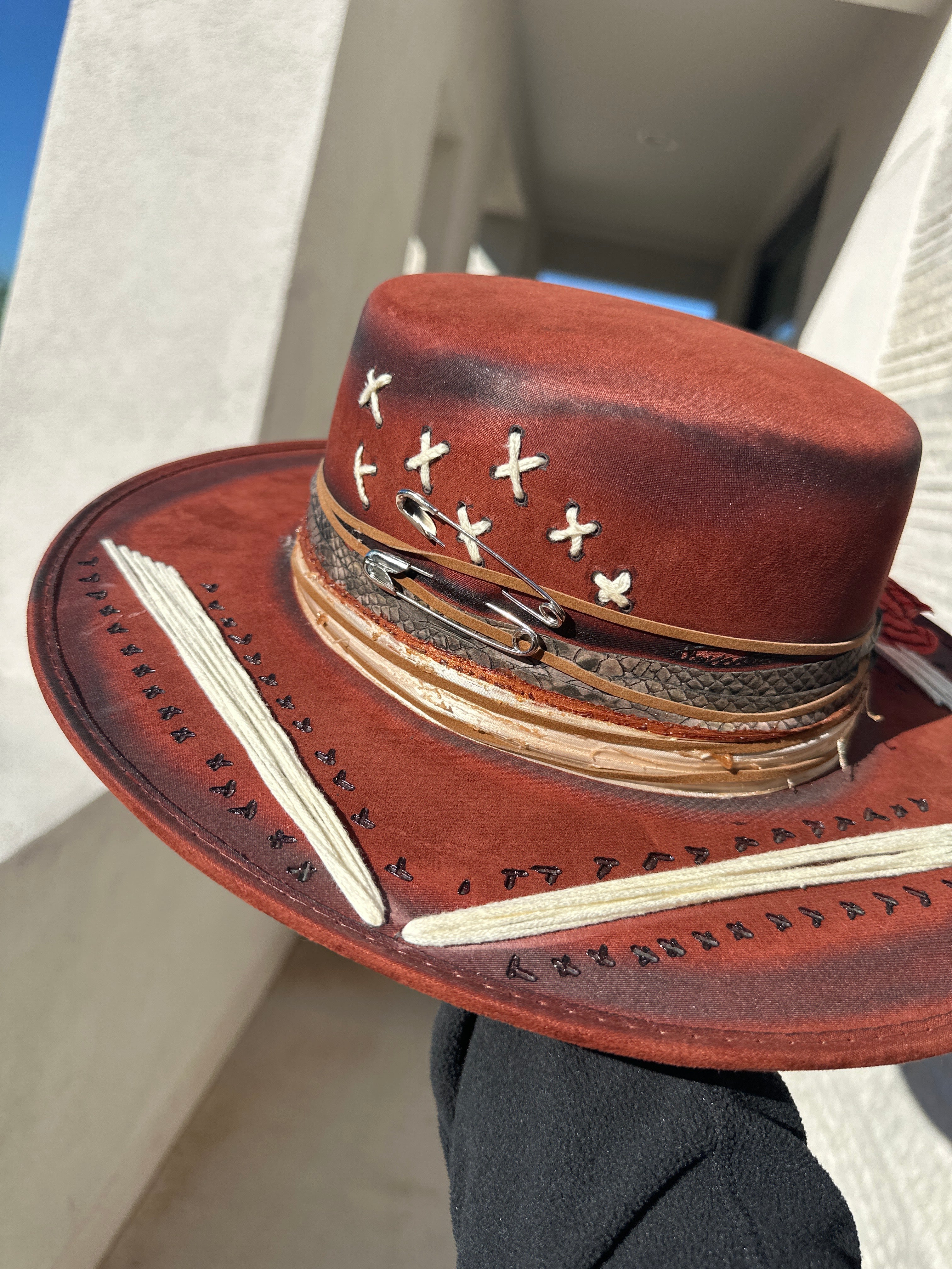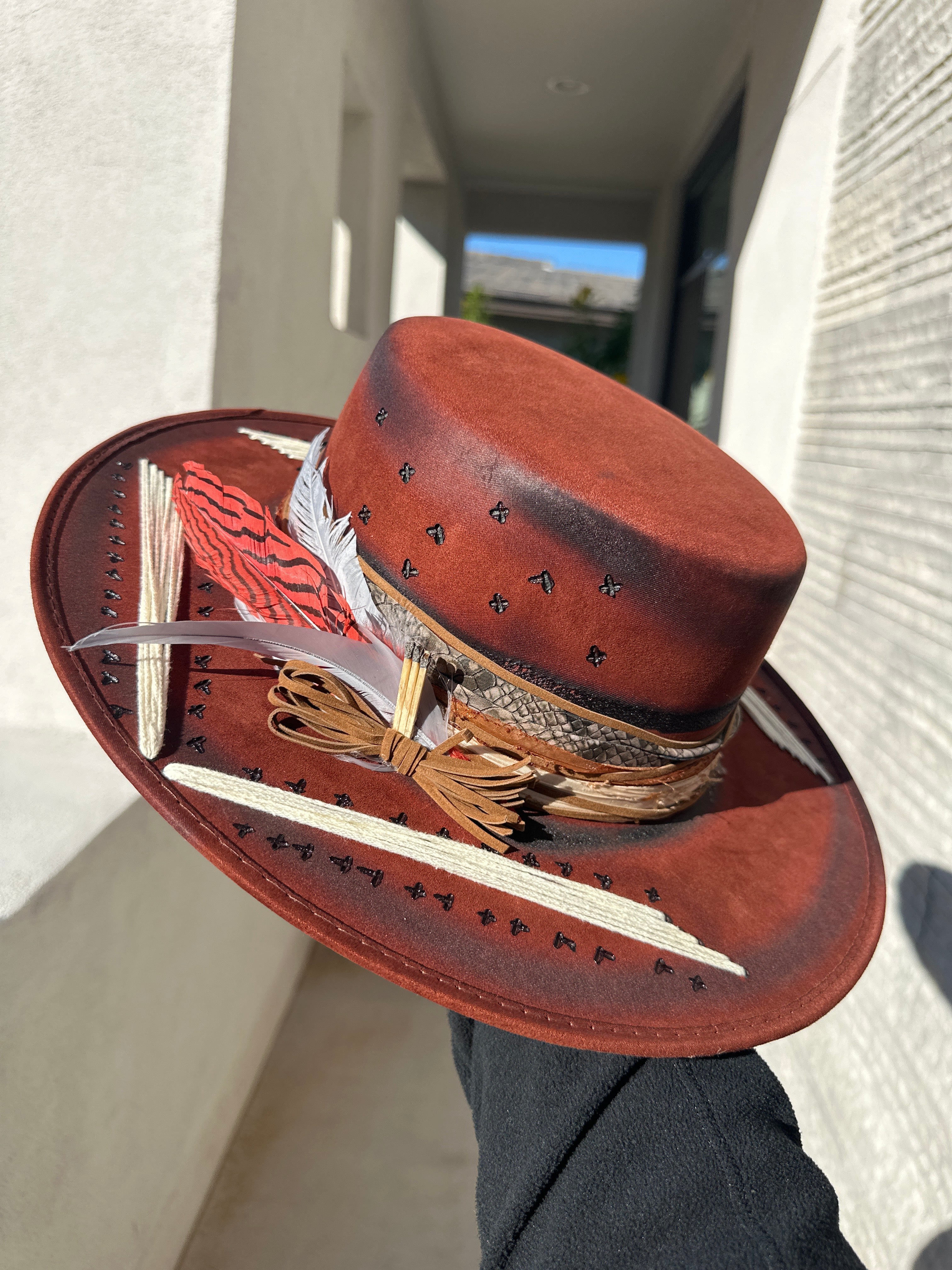 Custom one of a kind fedora. Vegan Suede finish.