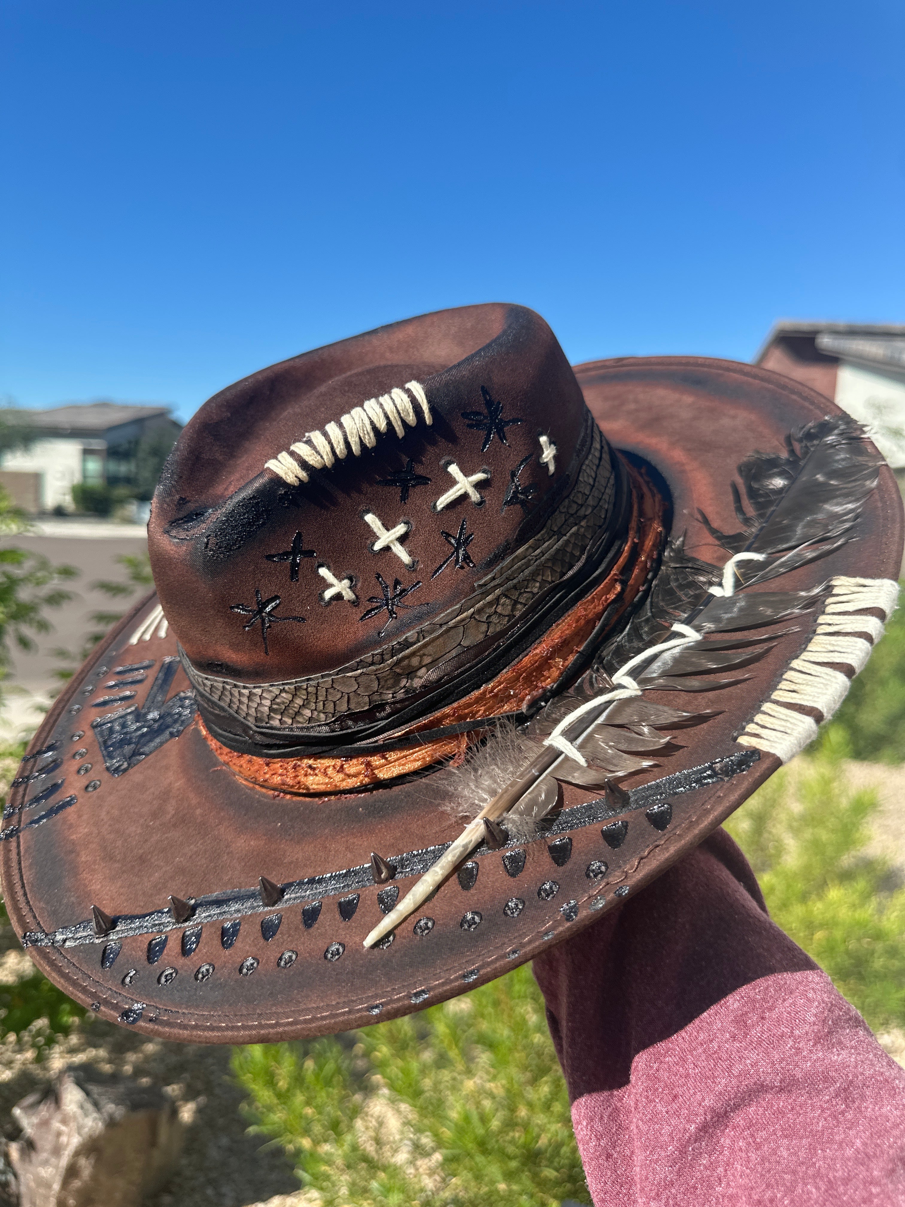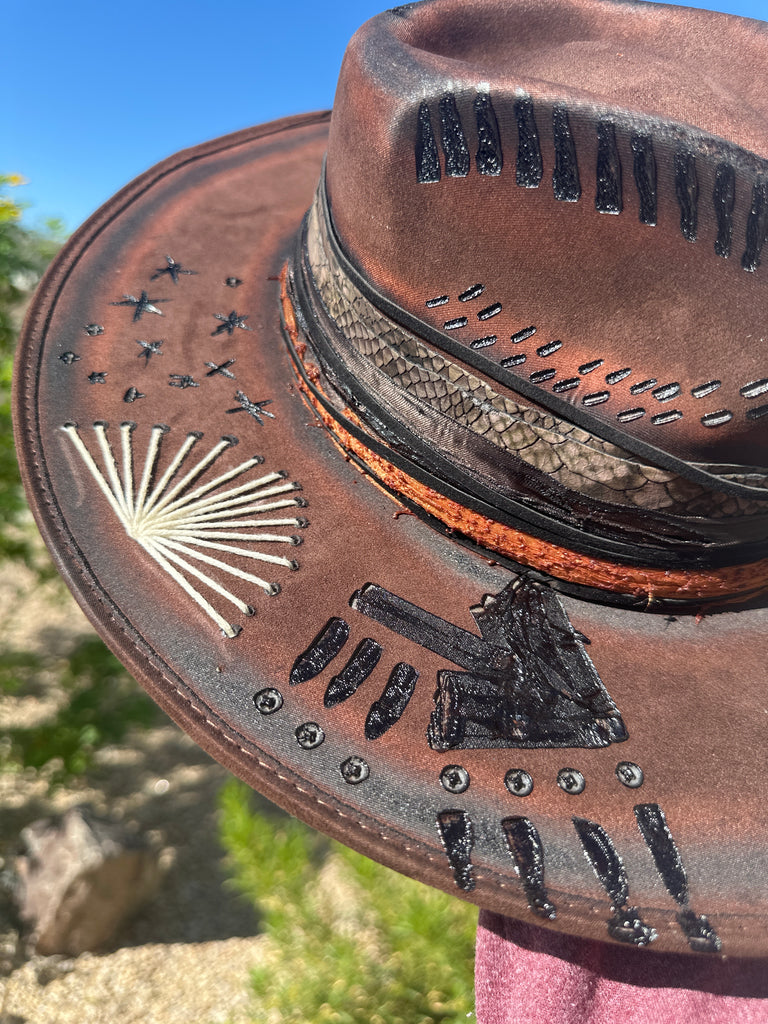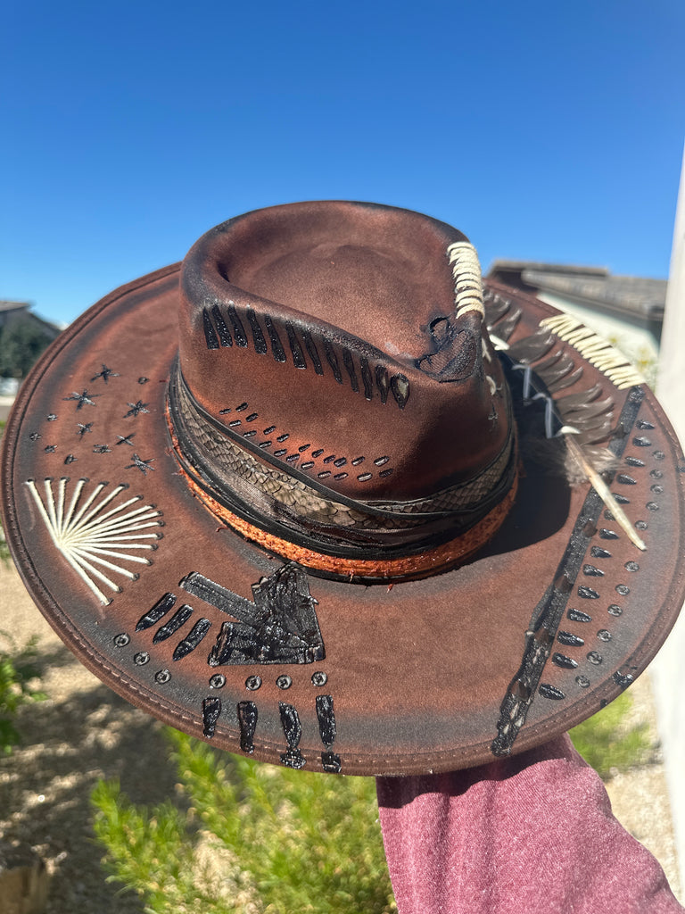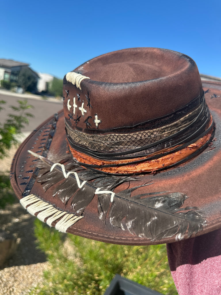 Custom one of a kind fedora. Vegan Suede finish.