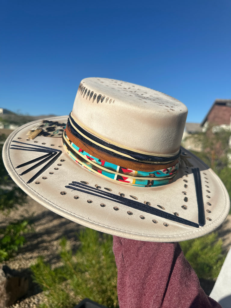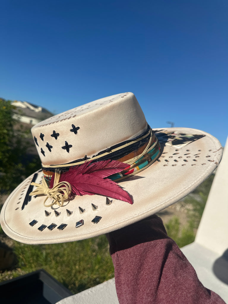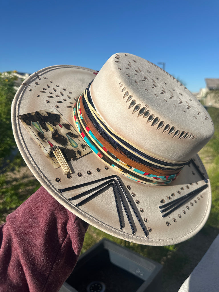 Custom one of a kind fedora. Vegan Suede finish.