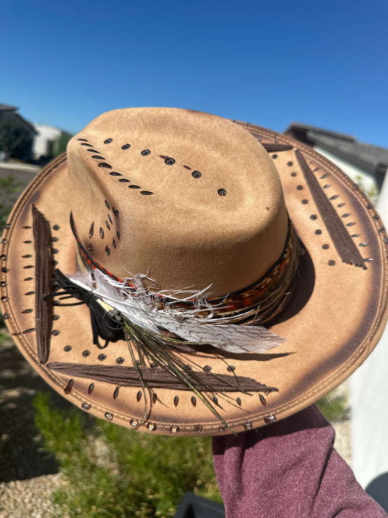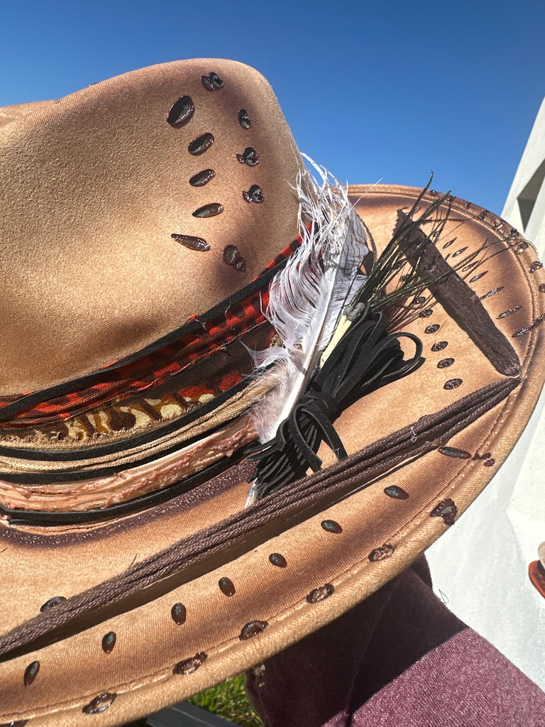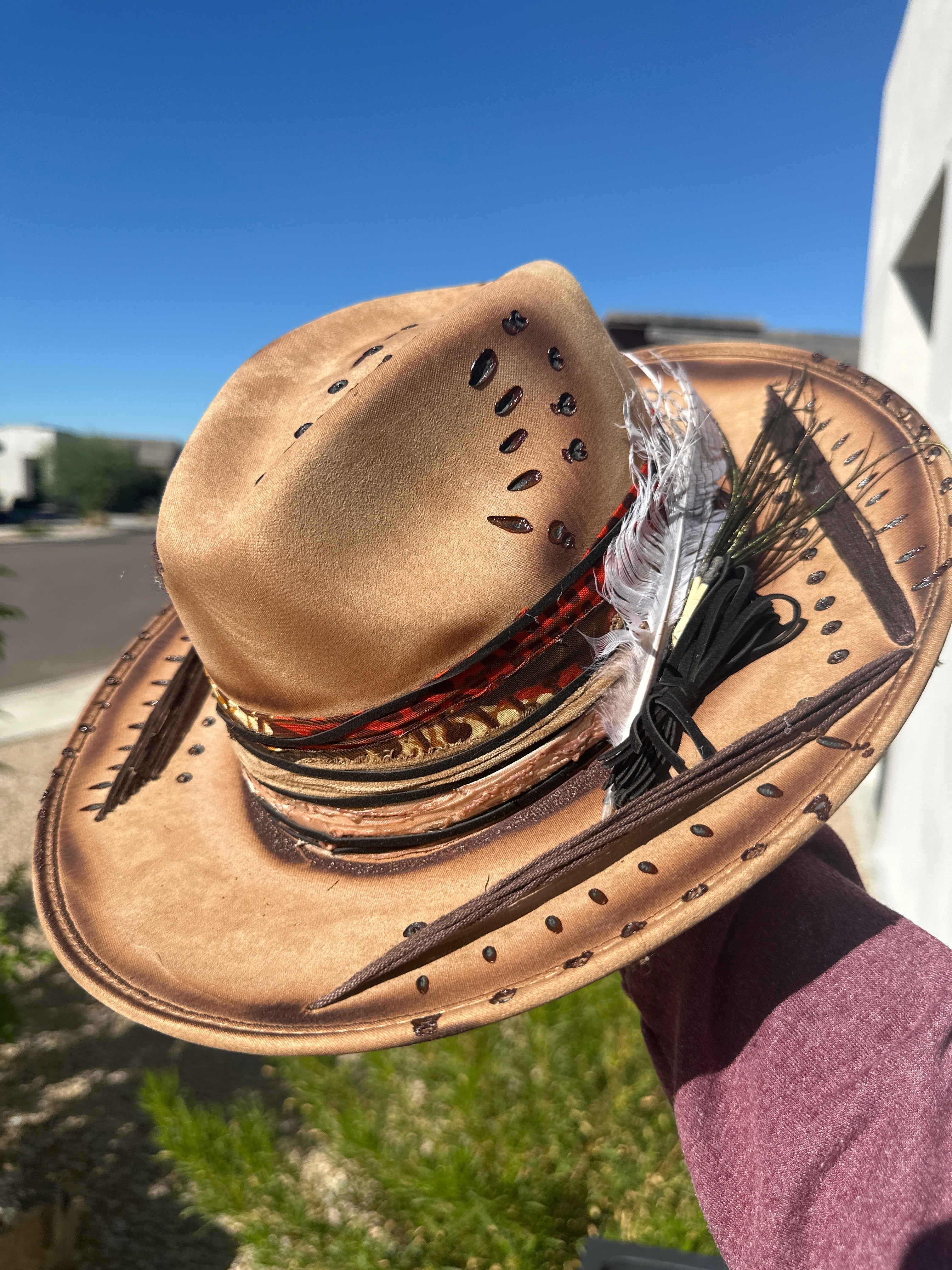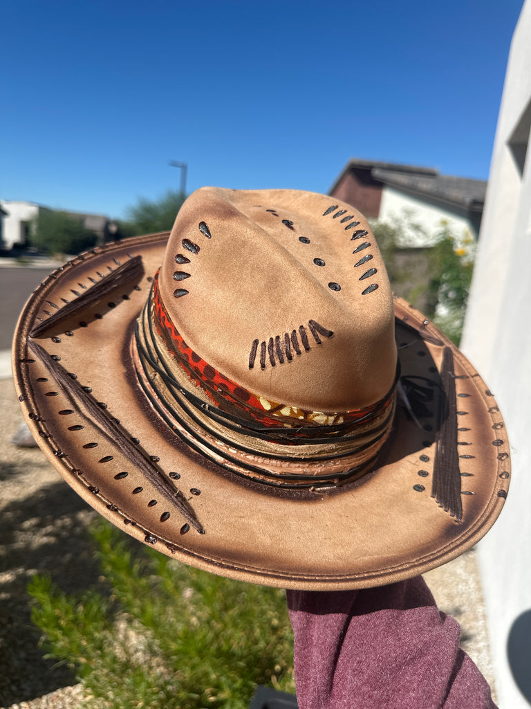 Custom one of a kind fedora. Vegan Suede finish.