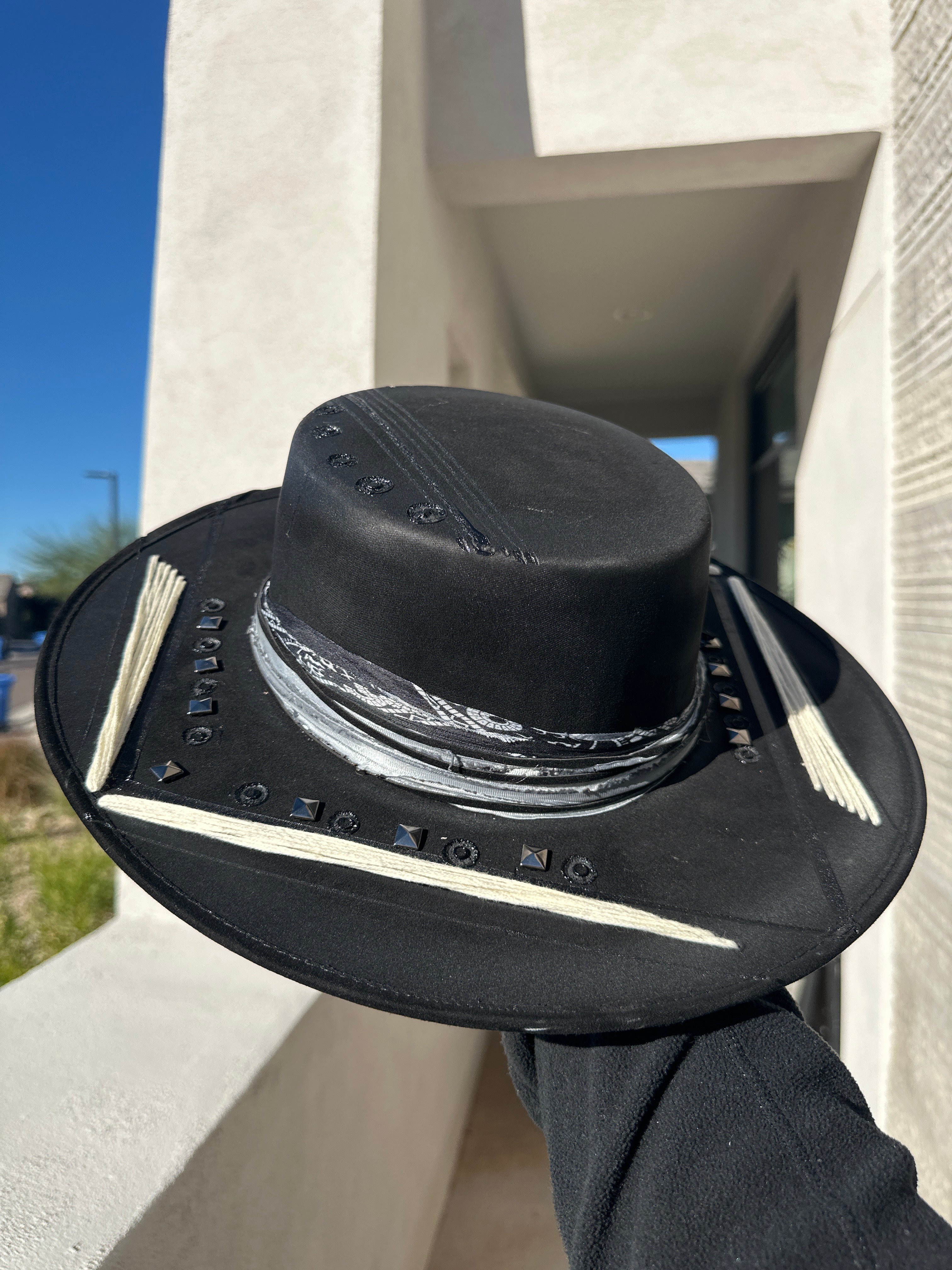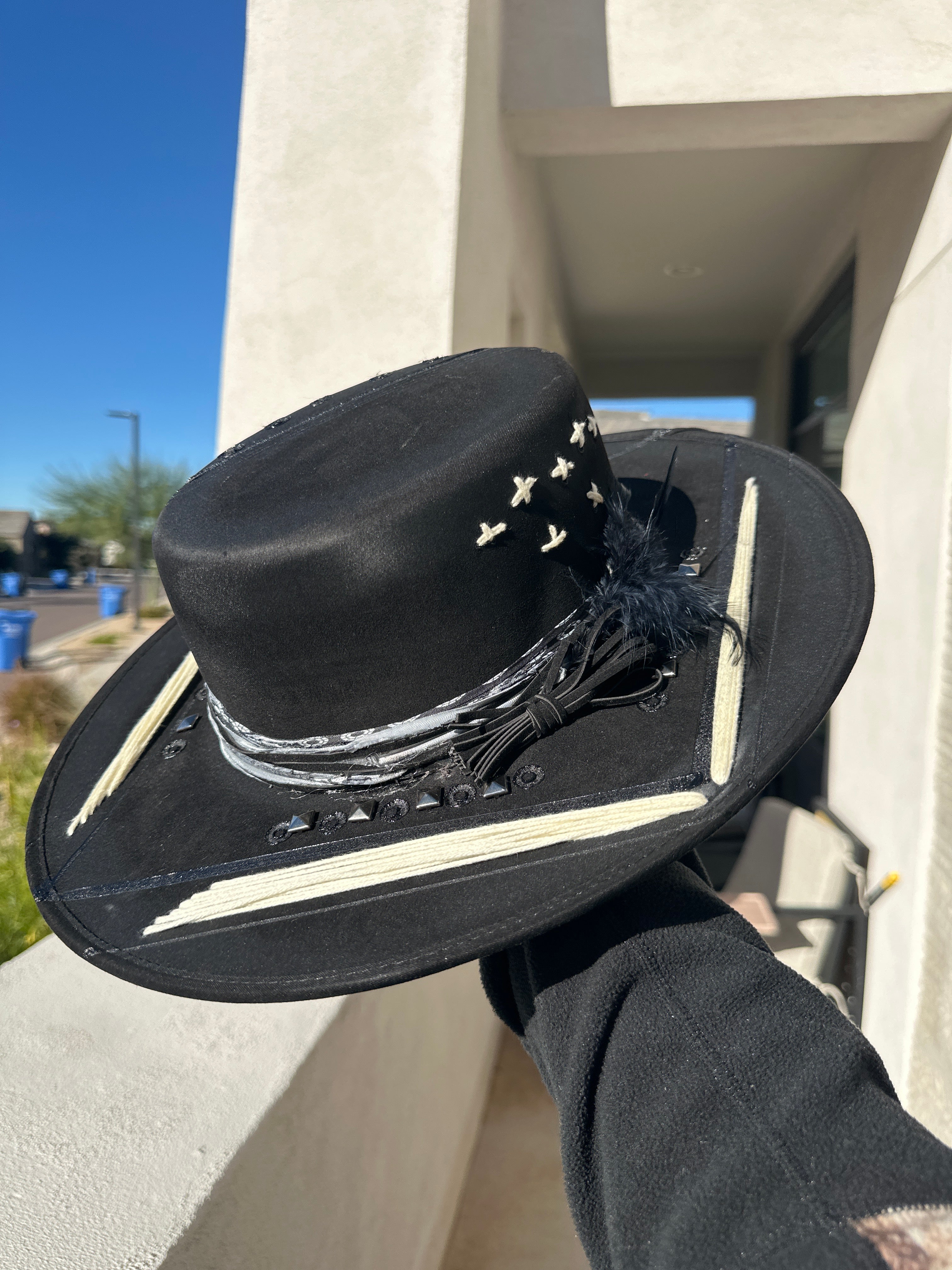 Custom one of a kind fedora. Vegan Suede finish.