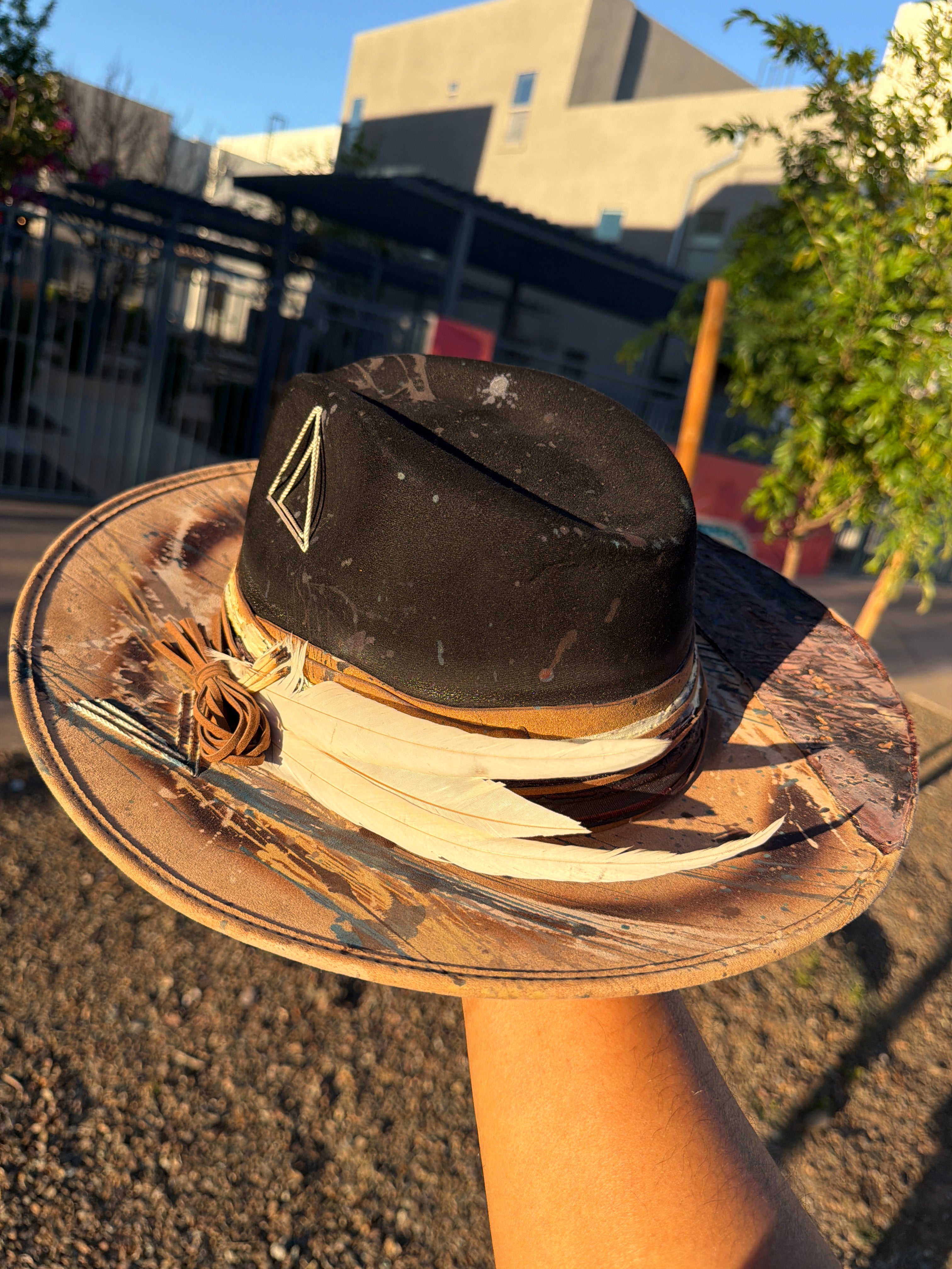 Custom one of a kind fedora. Vegan Suede finish.