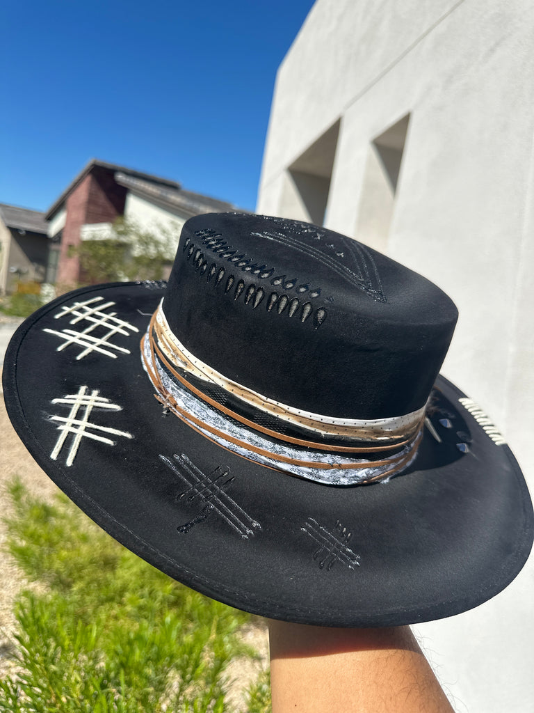Custom one of a kind fedora. Vegan Suede finish.