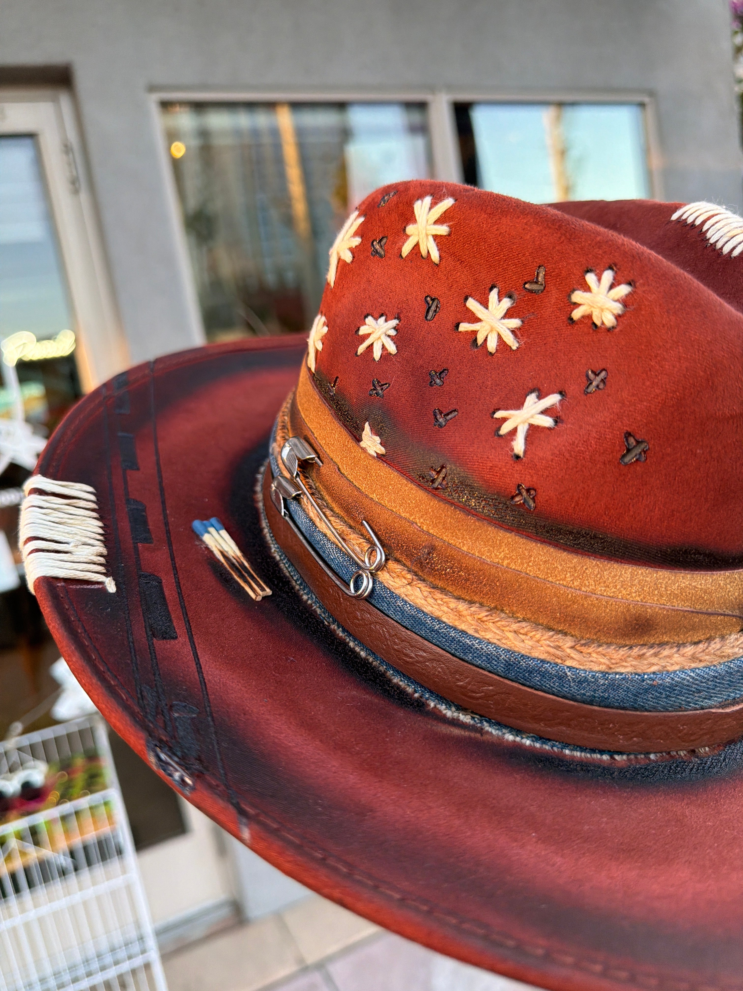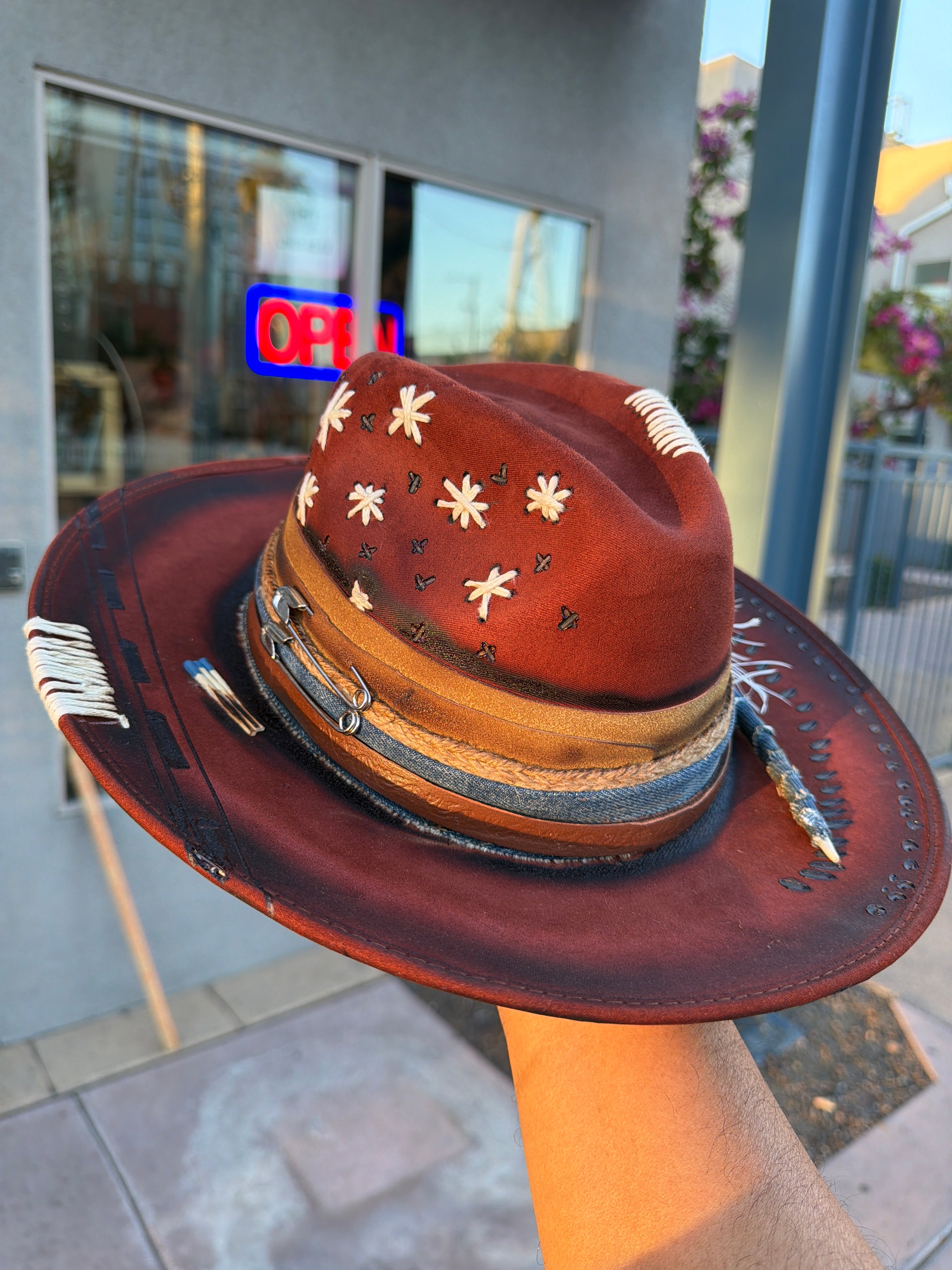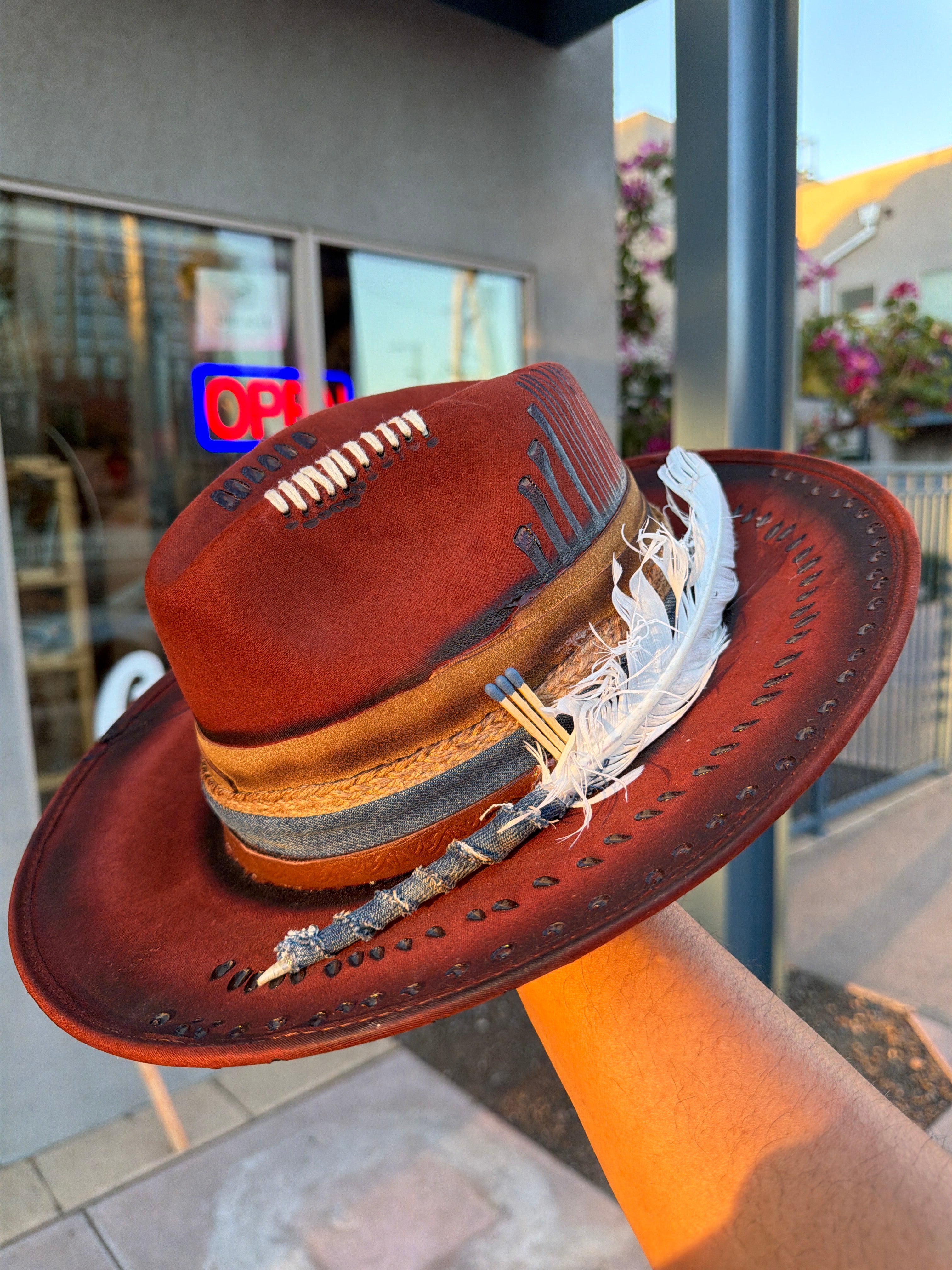 Custom one of a kind fedora. Vegan Suede finish.
