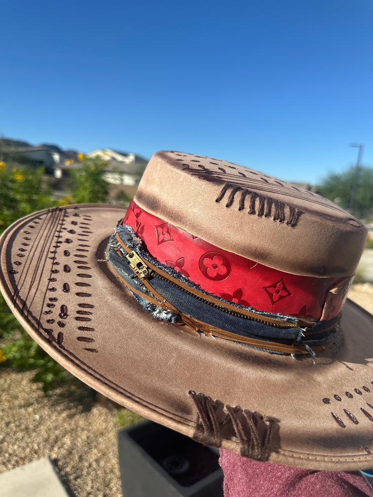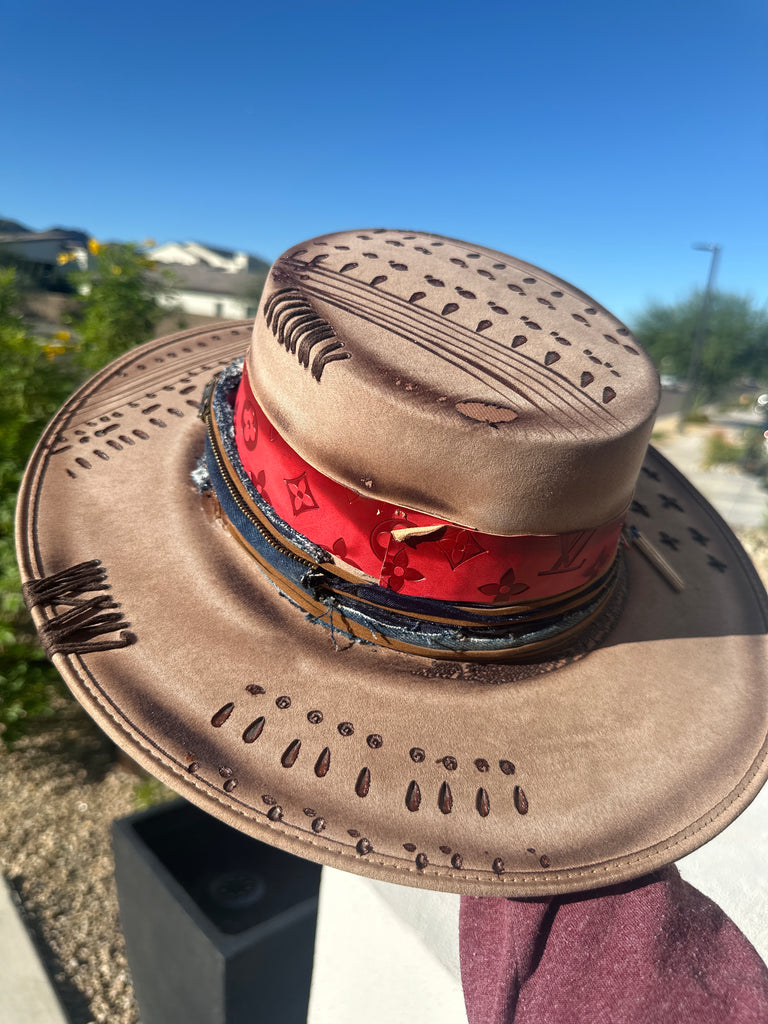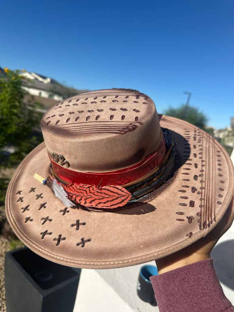 Custom one of a kind fedora. Vegan Suede finish.