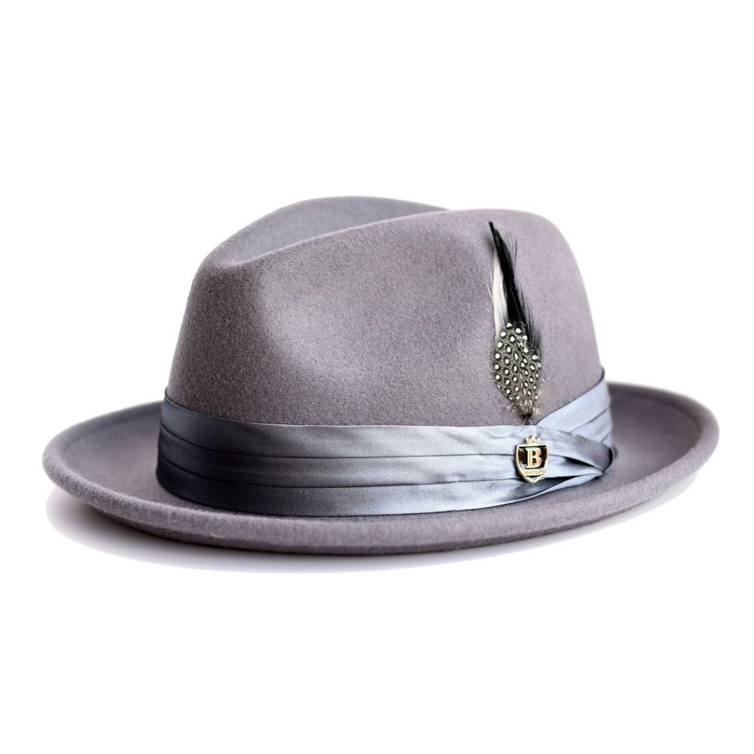This classic wool fedora 2XL is a must have accessory for anyone's wardrobe. It is crafted from 100% fine Australian Wool with a shine-on self-matching satin hat band. The brim measures 2.25" and snaps up and down so you can wear it how you choose!