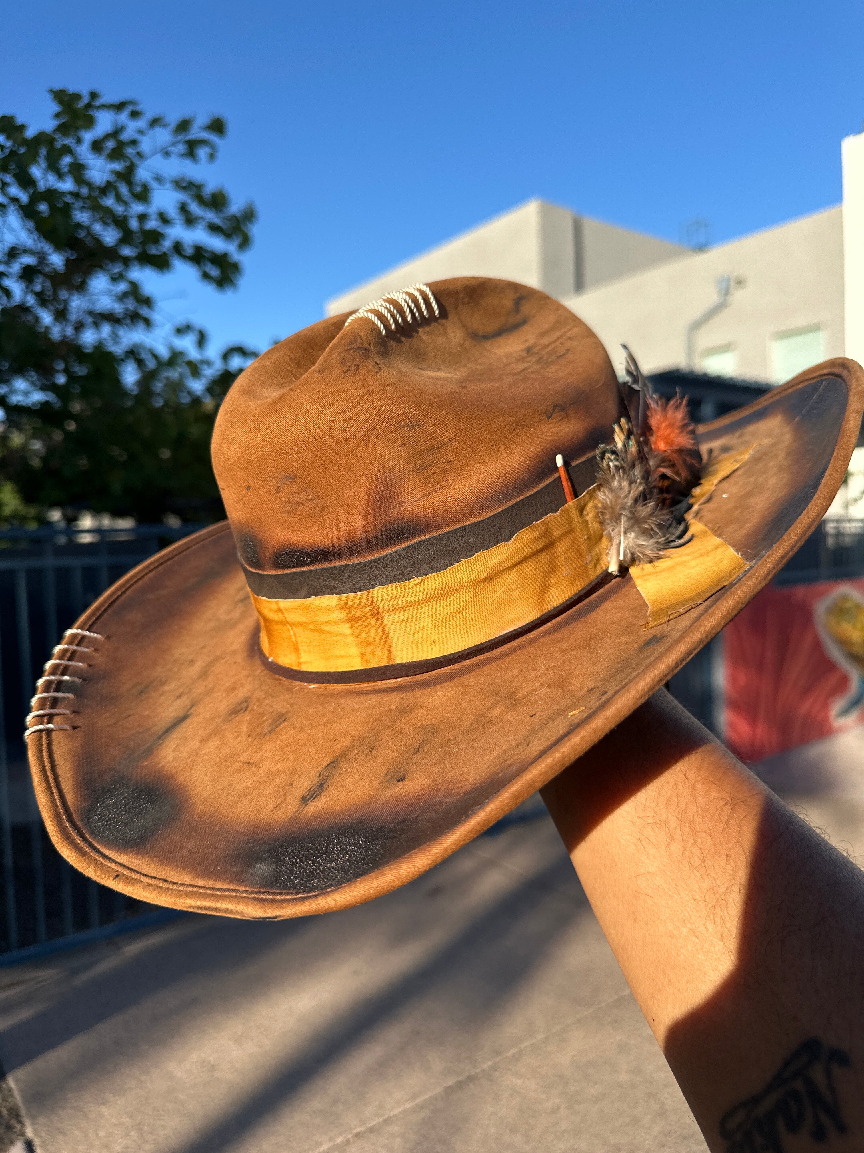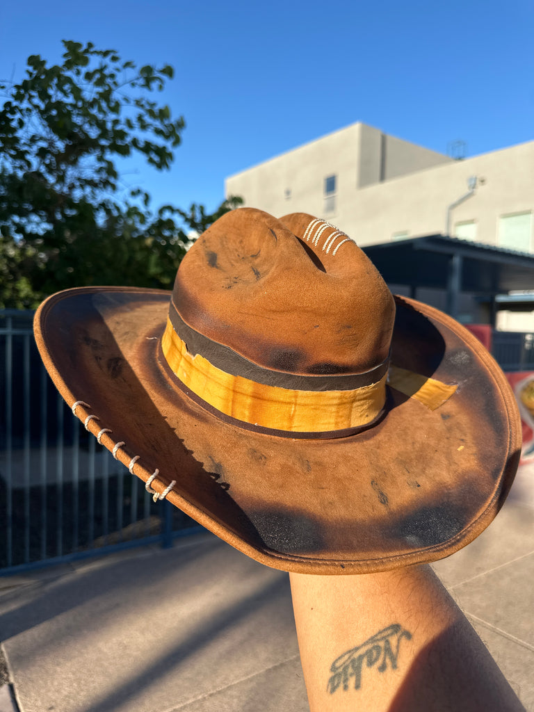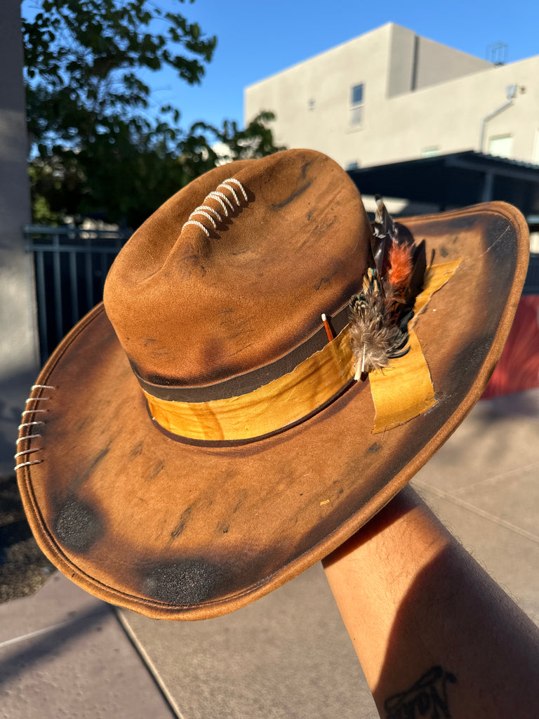 Custom one of a kind fedora. Vegan Suede finish.
