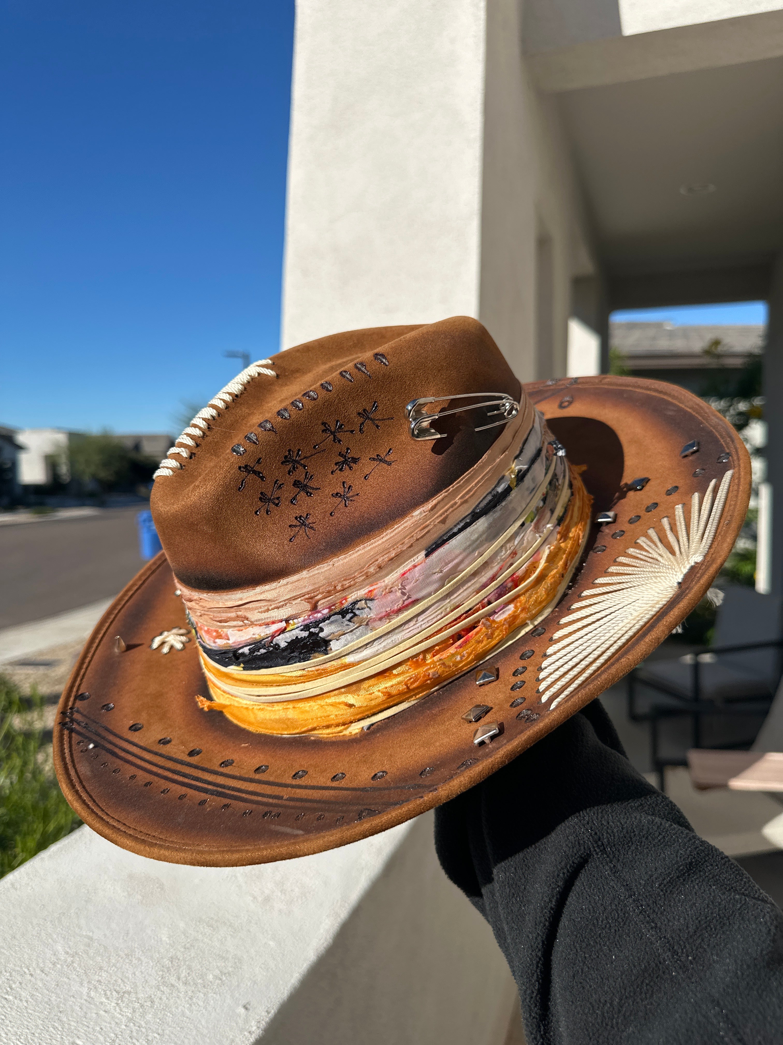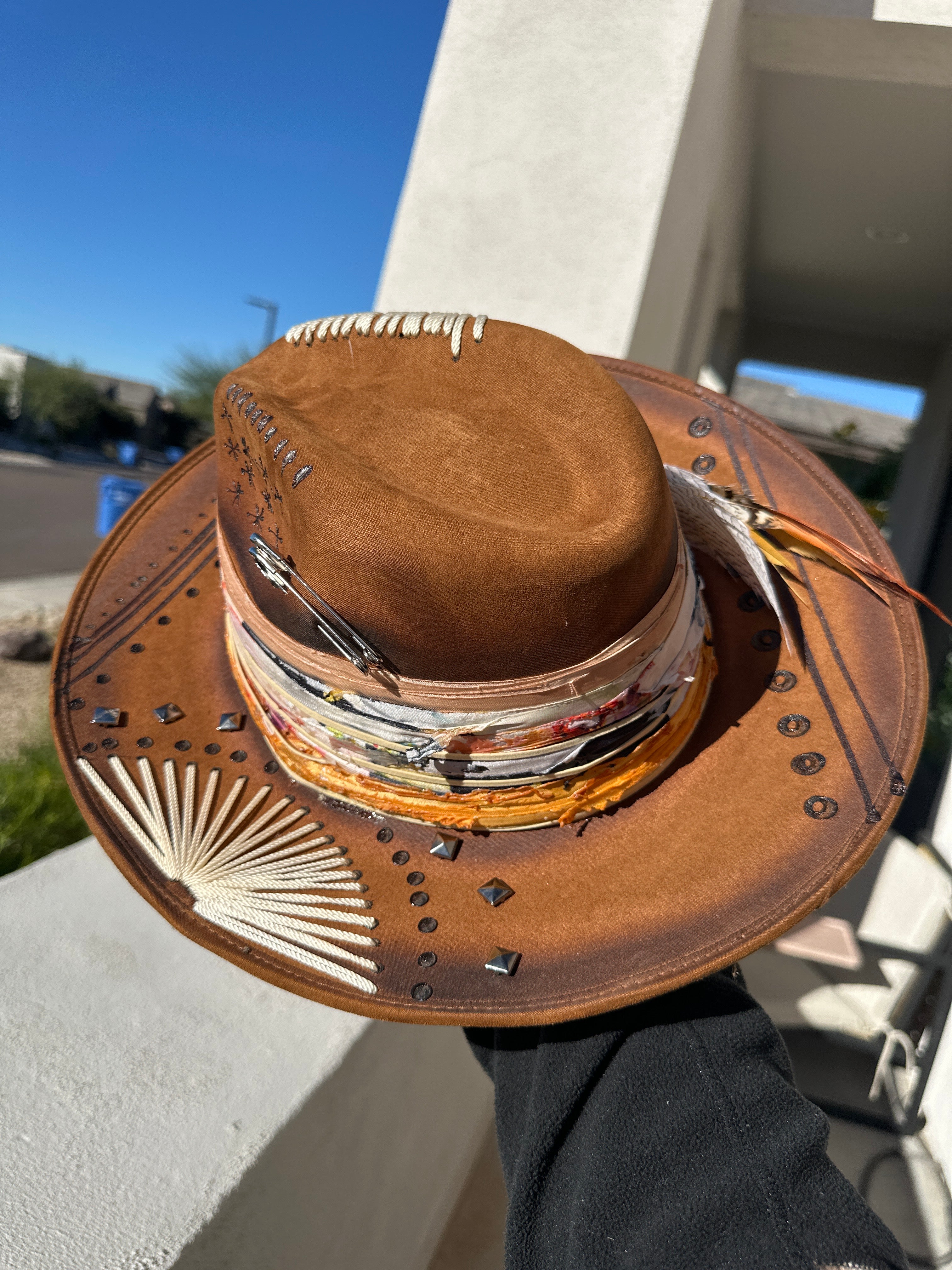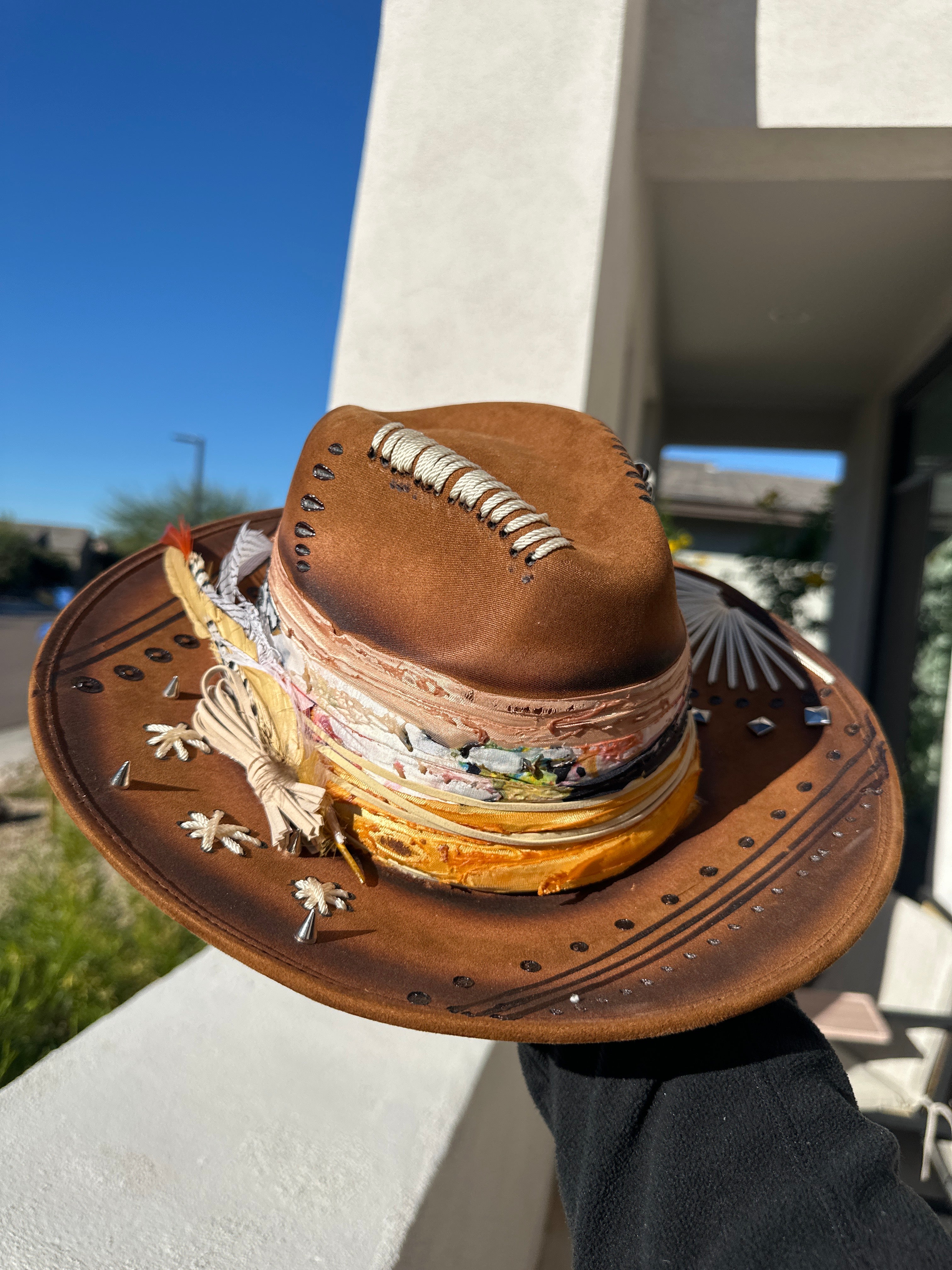 Custom one of a kind fedora. Vegan Suede finish.